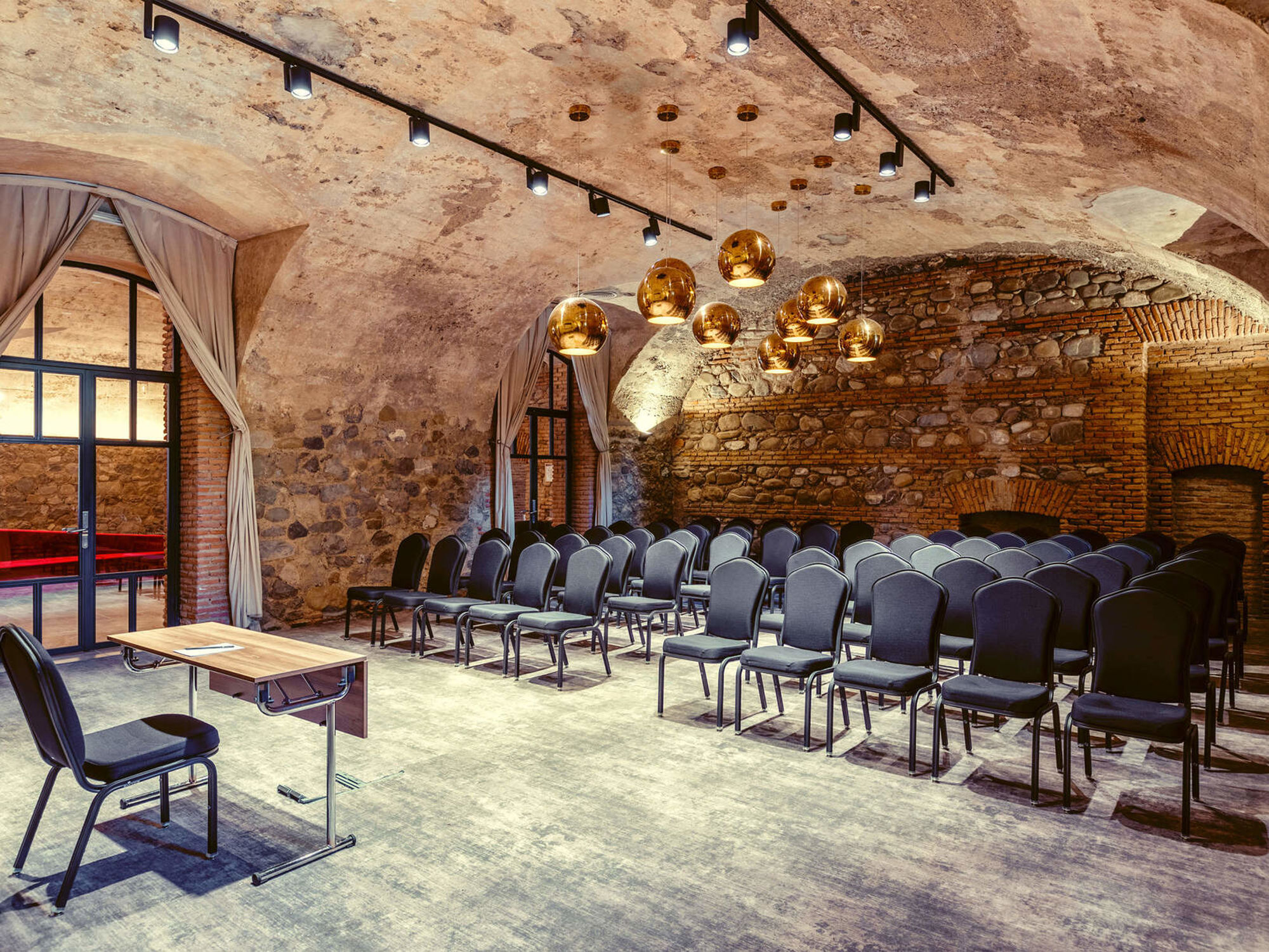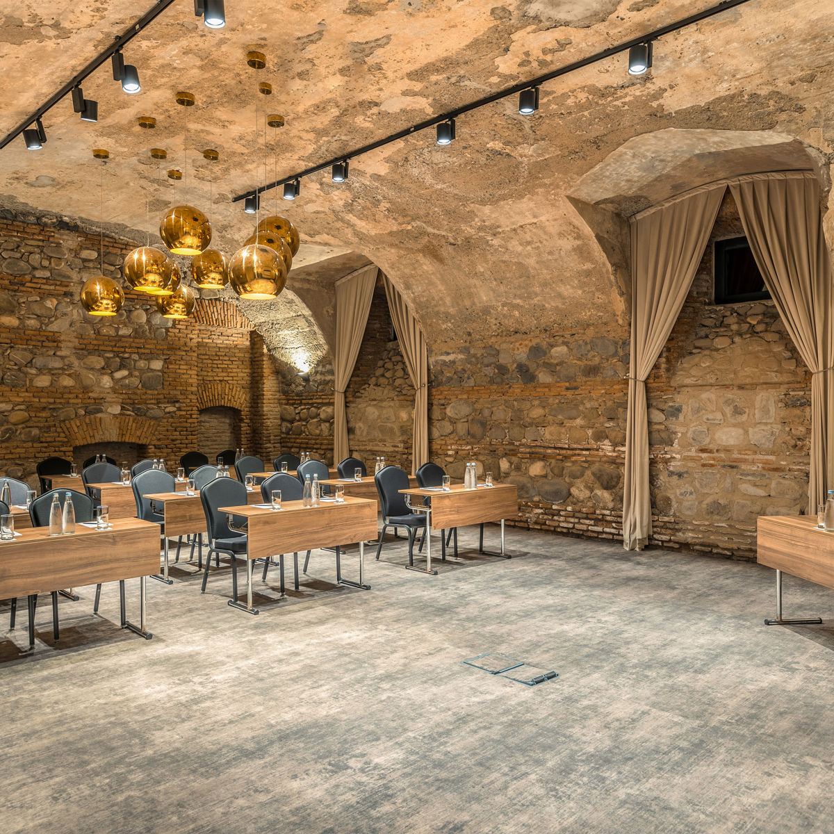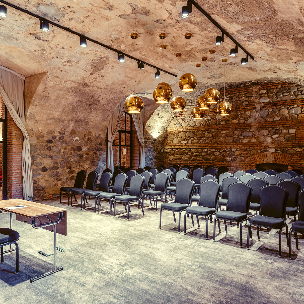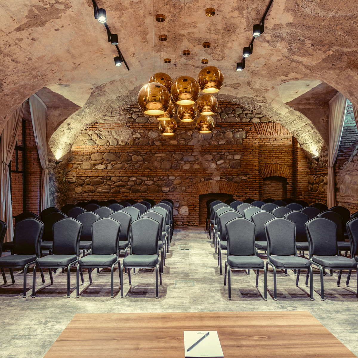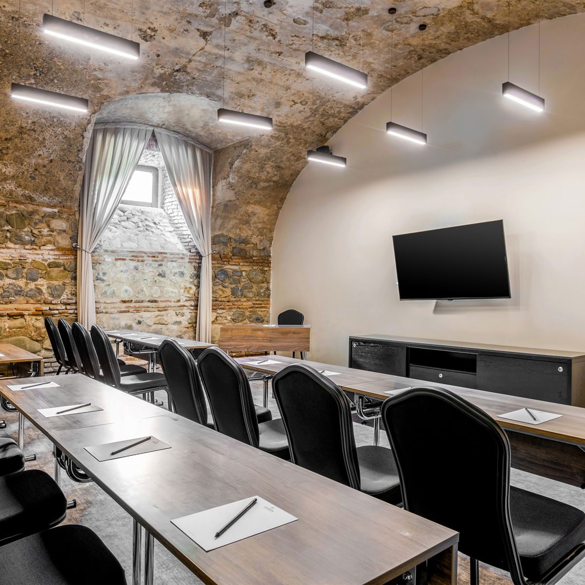 Saperavi Room is an elegant venue designed for intimate events, accommodating up to 30 guests. Situated in the historic part of the hotel, it features timeless Georgian architecture and modern facilities. Ideal for private meetings or small gatherings, the room offers a sophisticated and comfortable atmosphere for any occasion.