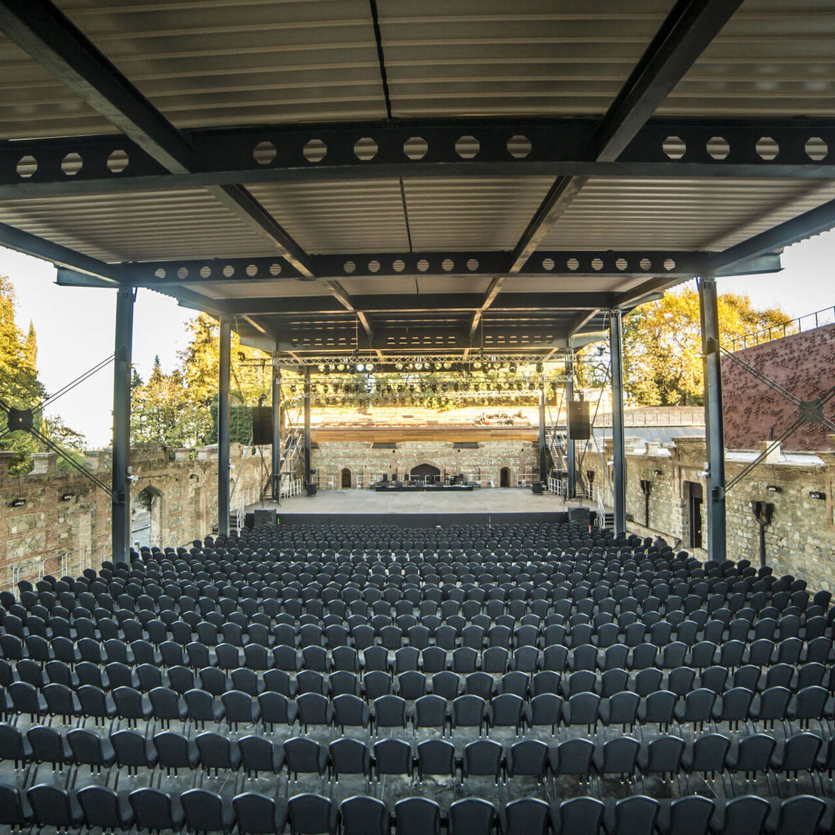 Amphitheater is a breathtaking open-air venue. Surrounded by lush landscapes and historic charm, this amphitheater accommodates up to 700 guests, making it perfect for concerts, performances, and large gatherings.